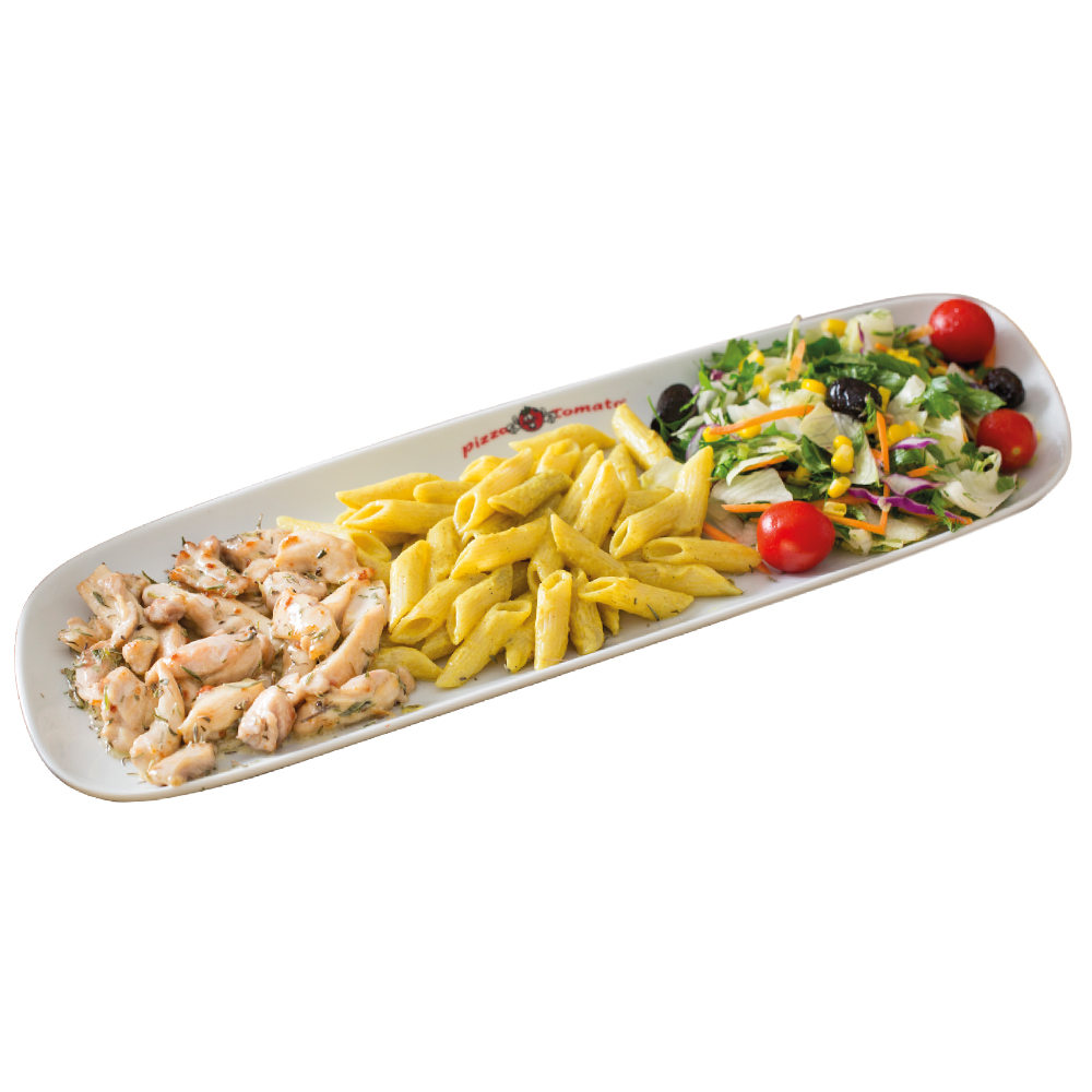 Tavuk, Mantar, Kırmızı ve Yeşil Biber, Köri Soslu Penne, Salata + Pepsi